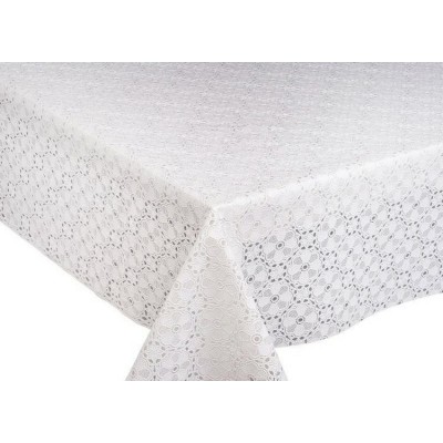 Cerata stołowa koronkowa biała z tkaniny poliestrowej w rolkach szer. 137cm, długość rolki: 20m. Skład: 100% PCV na podłożu ze 100% tkaniny poliestrowej. Eleganckie, drukowane oraz tłoczone wzory imitujące naturalną tkaninę.