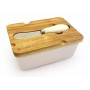 Maselniczka porcelanowa z pokrywką akacjową oraz nożykiem