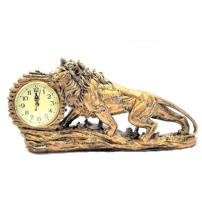 Zegar kominkowy z motywem lwa, idealnie nadaje się jako ozdoba do kominka i innych elementów wnętrza pokoju.