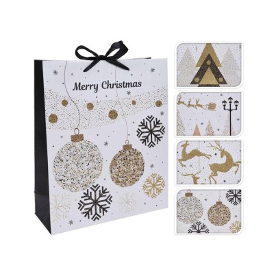 Świąteczna ozdobna torba na prezenty 4 różne wzory: Renifery, Bombki, Latarnie Uliczne i Choinka. W przypadku braku wyboru wzoru wysyłamy losowo.
